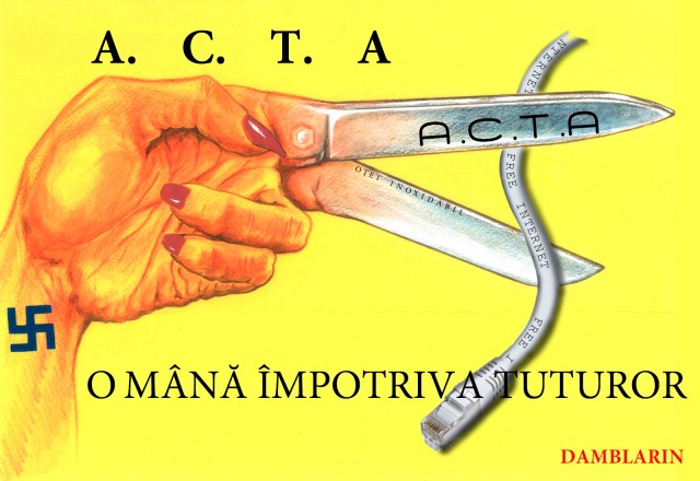 – Mocacino, am impresia ca in Romania nu s-a constientizat suficient gravitatea situatiei. Daca A.C.T.A va deveni o realitate, ne vom intoarce la tipul de cenzura din perioada dictaturii comuniste. Si asta la nivel european…Libertatea de exprimare prin intermediul internetului(asa cum o stim astazi), va disparea. Si o data cu ea, interactionarea neobstructionata intre indivizi si accesul la o presa libera, necontrolata…