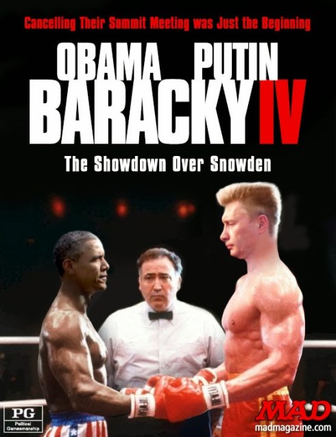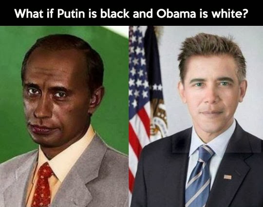 Daca este adevarat ca KGB-ul l-a crescut pe Putin iar CIA-ul l-a crescut pe Obama, trebuie ca le-au injectat hormoni de crestere diferiti. Pentru ca lui Putin i s-au depozitat mai mult in muschi si mai putin in creier, daltuindu-i un profil de neandertal (barfele de la Kremlin sustin ca Putin nu poate atinge orgasmul decat dupa ce ameninta).