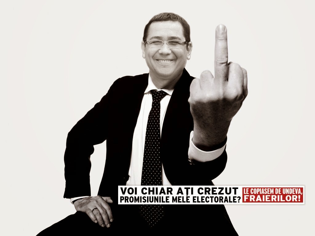 G – Auzi uăi, tu di domnu Ponta sî nu ti leji, că-i român ortodox di al nostru, cu frica Dânsului, Şel di Sus, cari ni dă pensiuţâlii şî ni poartî di grijă. Nu ca neamţu şela, cari vrea sî ni taii tăt, tăt, tăt şî apoi sî ni vândă ardialu la unguri. Şie dimocraţâii bre, şie progries bre ? Astia nu-s pintru minii, că pintru ăia bogaţ. Io n-am tribuinţă di aşa şiva. Pintru mini domnu Ponta îi tăt,tăt,tăt şi trebi la ţara aiasta. Nic mai mult !.