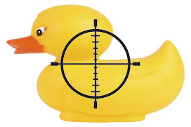 Sitting duck [rața care stă nemişcată], este o expresie ce s-ar traduce prin ‘țintă sigură’.