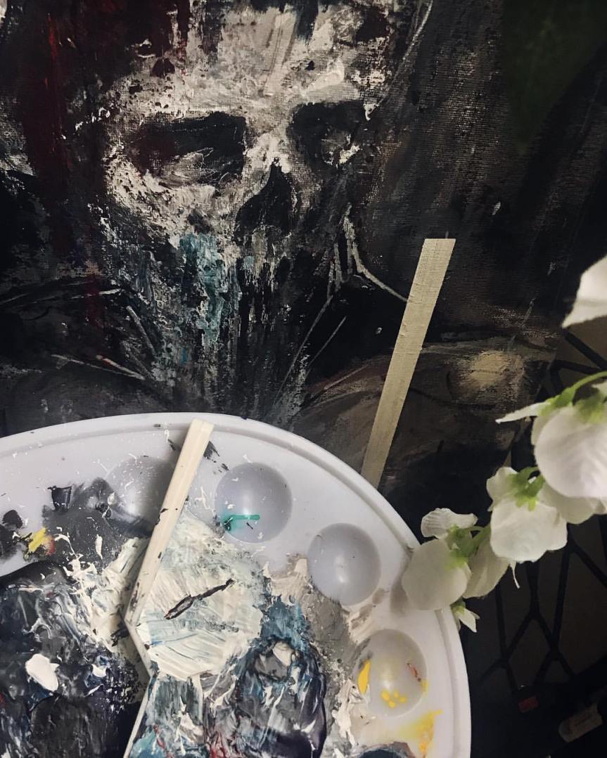 Şi un palid portret, fără ochi în orbitele-i vii.