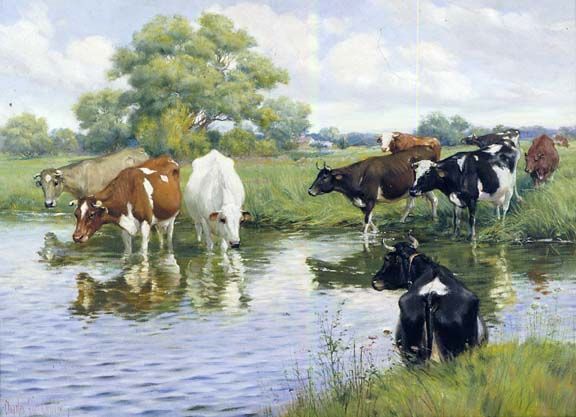 Ion mulgea vaca lângă lac